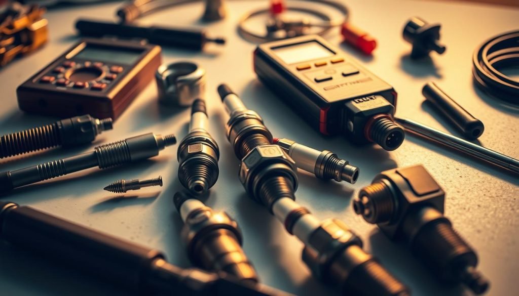 You’ll also need a socket set, screwdrivers, and needle-nose pliers for removing and installing parts. A spark plug gap gauge is key for new plugs. A compression tester finds serious engine problems that might cause misfires.